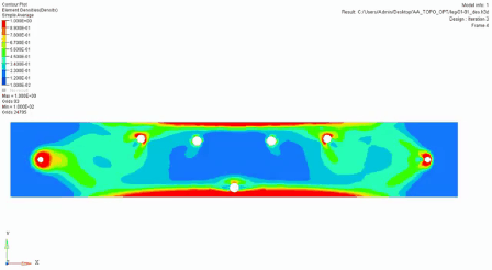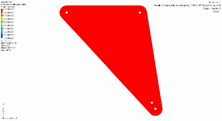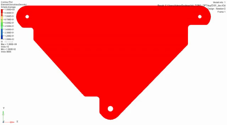 In the figures below, you can see the design history of the part. The color represents mesh density (how much material there is at that place).